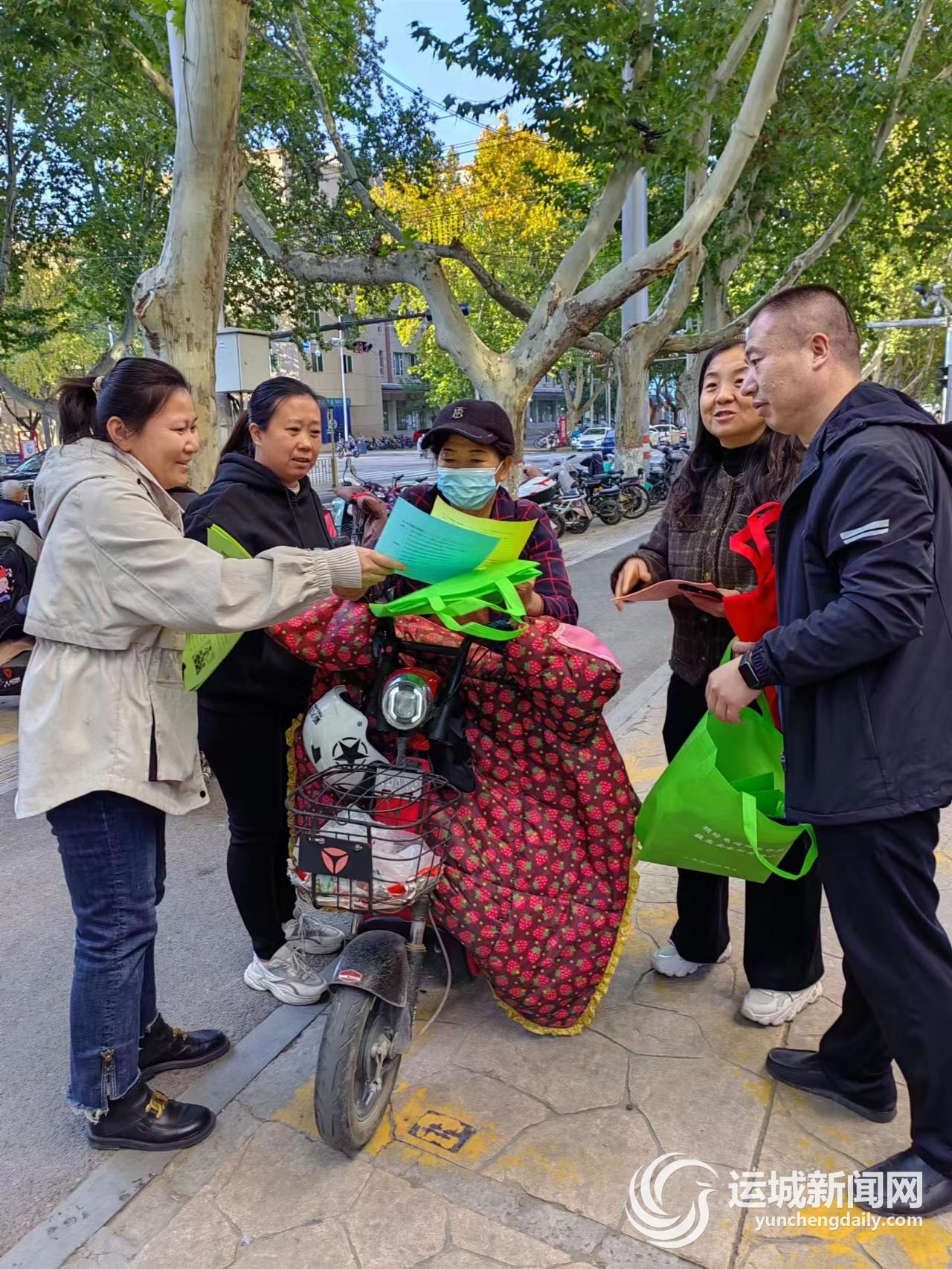 ▲永濟市財政局黨員干部向群眾發放反電信網絡詐騙宣傳單,并接受相關咨詢。
