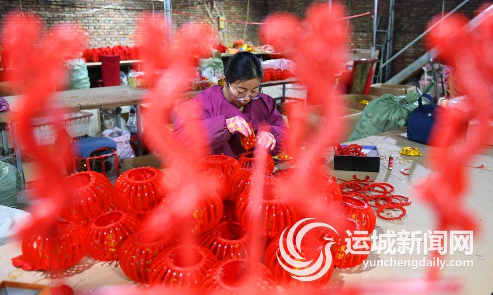 11月13日,稷山縣稷峰鎮楊趙村燈籠產業園內,工人在組裝兒童玩具燈籠。