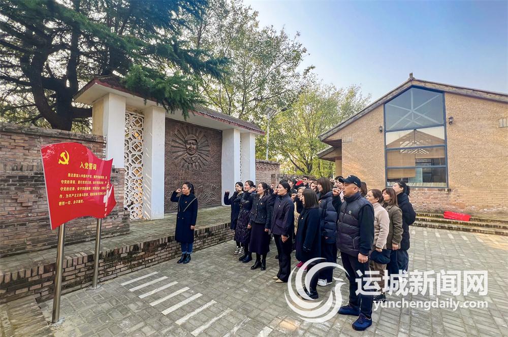 一幅幅圖片、一件件工具、一組組數字,生動地展示了西張耿夜校的形成和發展過程。在“一個受歡迎的農業技術夜校”紀念館內,黨員干部認真了解當年夜校的發展情況,感受往昔奮斗歷程的艱難困苦和先輩的無私奉獻。隨后在講解員指引下,大家共同參觀了農民書屋、知青小院,感受黨建引領帶動鄉村振興的力量。最后,全體黨員面對鮮紅的黨旗,重溫入黨誓詞,堅定理想信念,增強宗旨意識(下圖)。