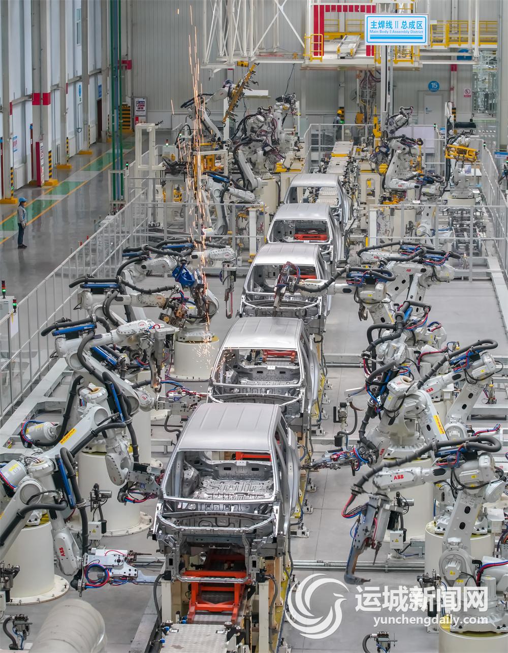大運新能源汽車沖焊車間智能化生產流水線作業。