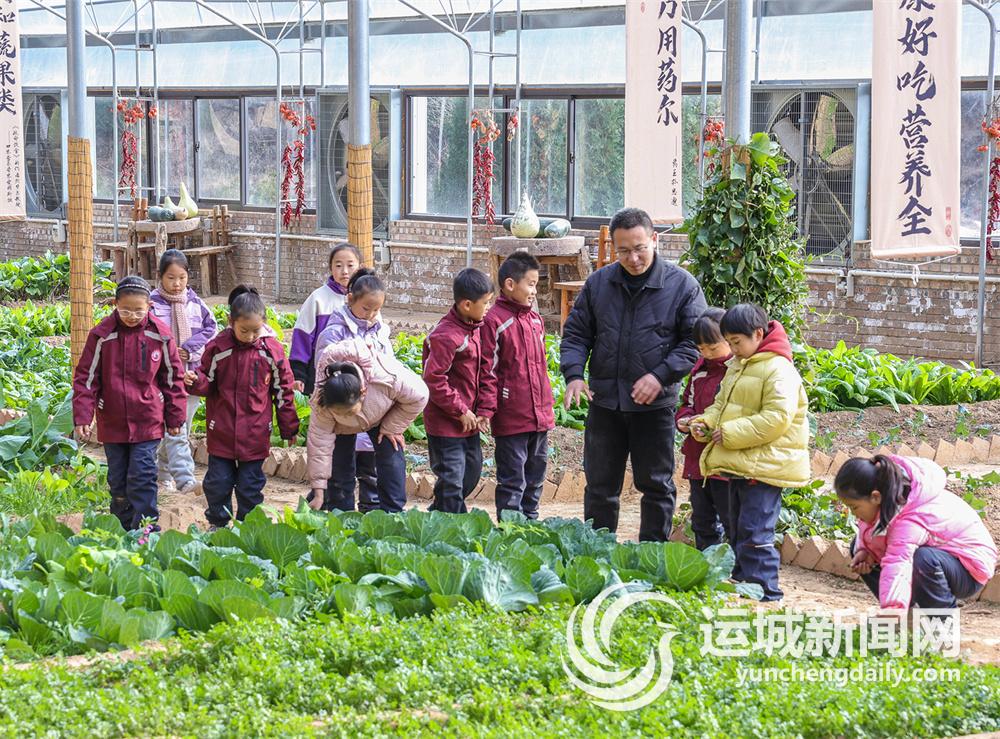 11月29日,在萬榮縣方山文禮學(xué)校留耕園勞動教育基地,孩子們在有機蔬菜大棚內(nèi)勞動實踐。