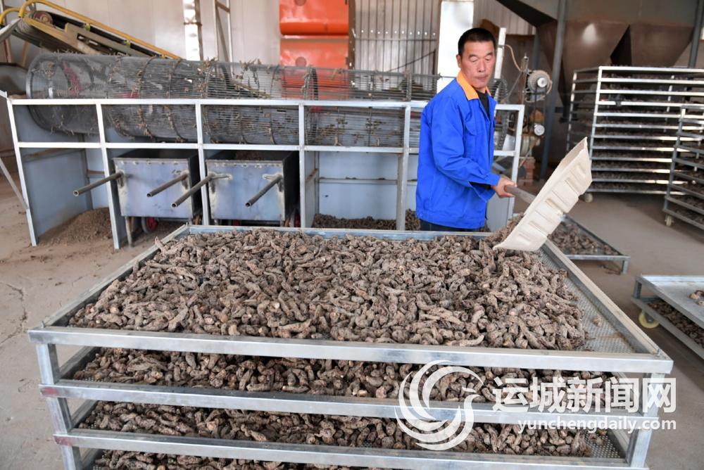 稷山縣太陽鄉興隆莊村建福中藥材種植專業合作社的工人在加工、分揀中藥材地黃。