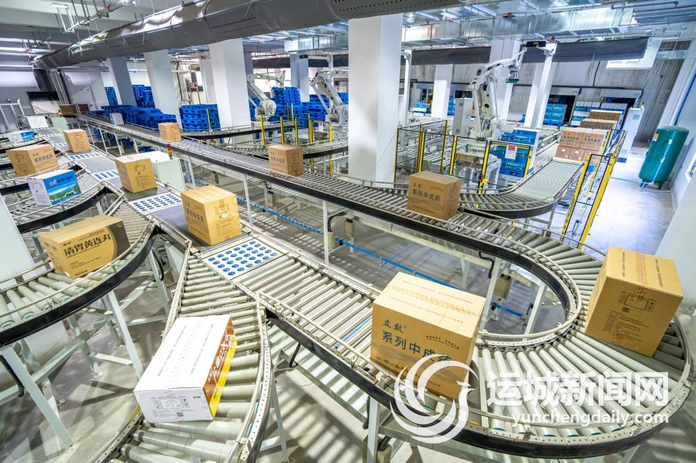 12月6日拍攝的萬榮縣現代中藥科技產業示范園區智能物流中心自動分揀、出庫、發運藥品的場景。