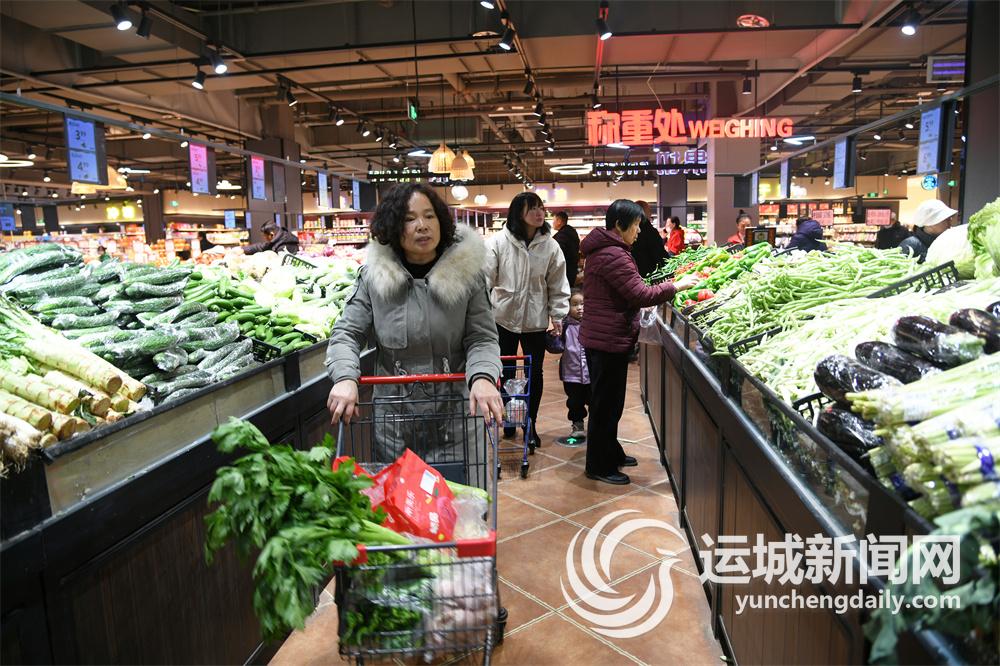 12月18日,在聞喜縣苗圃社區一家大型超市內,居民在選購新鮮蔬菜。