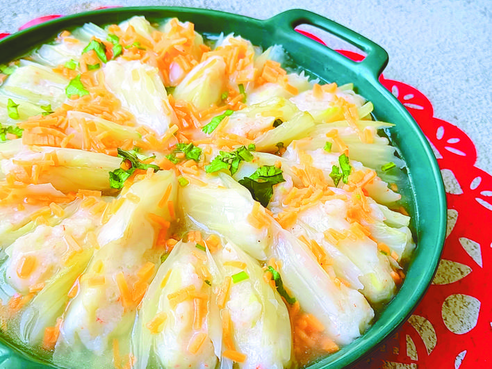 4.如果是小朋友吃可以不用加小米辣,也可以用娃娃菜代替白菜,蒸好的蝦滑白菜卷,一口咬下去既有白菜的清甜,又有蝦滑的鮮香,超級推薦。