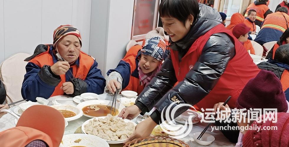 環(huán)衛(wèi)工人同吃愛(ài)心餃子 攝影 君巖