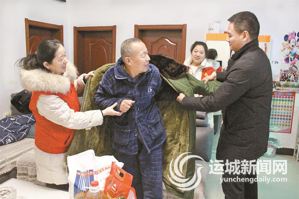 12月21日,聞喜縣社區(qū)服務(wù)中心工業(yè)園社區(qū)和該縣氣象局工作人員,為農(nóng)場(chǎng)佳苑小區(qū)困難居民送上軍大衣等御寒物品。