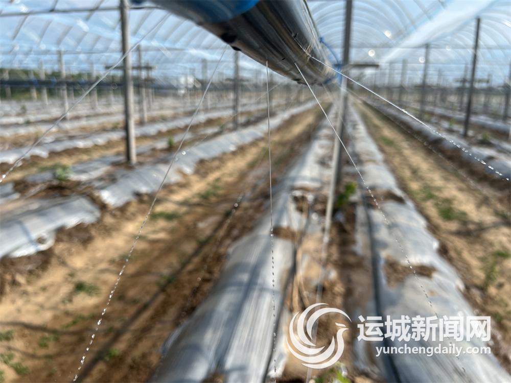 夏縣南大里鄉新建的日光溫室大棚內,自動化水肥一體化設備對反季蔬菜進行數控澆灌。