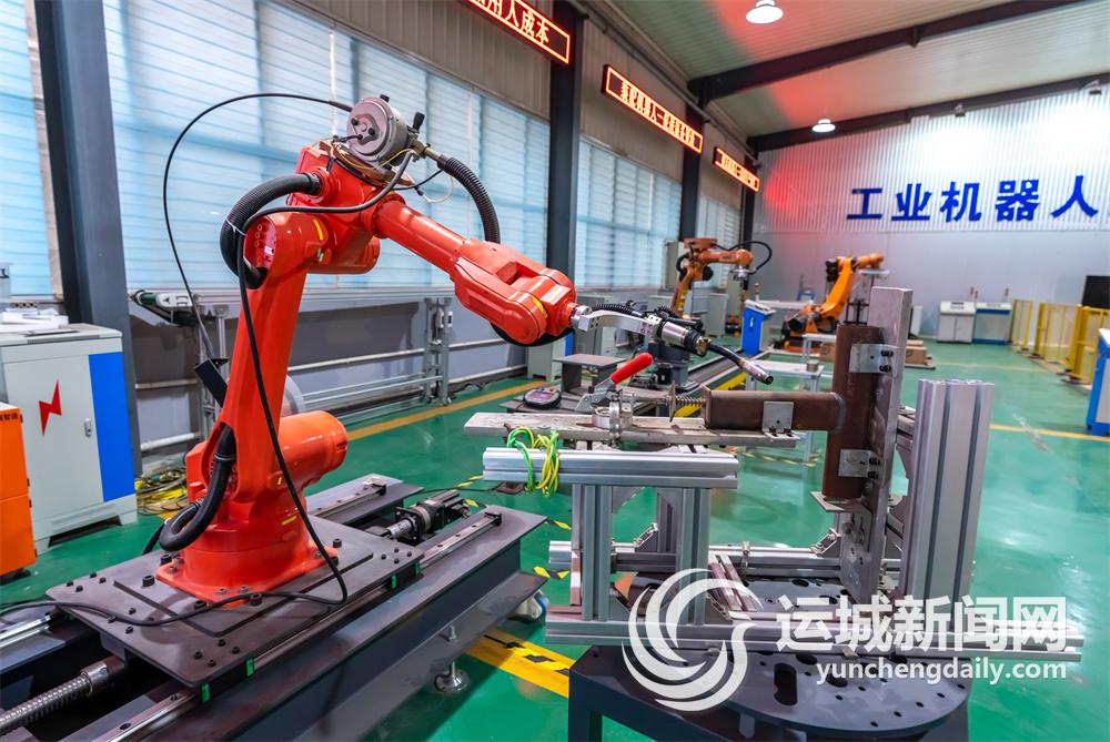 山西國強高科股份有限公司工業機器人應用技術研究基地,在對產品進行出廠前綜合調試。