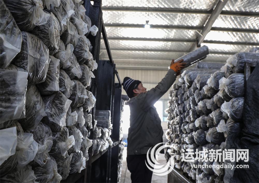 12月20日,在位于萬榮縣皇甫鄉的山西果菇農業科技有限責任公司制棒中心,員工在加工、存放培育香菇所需的菌棒。