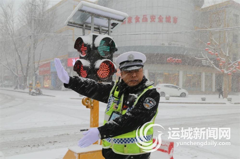 鹽湖交警大隊加強對中心城區人民路、學苑路、解放路、河東街、紅旗街等主干道的指揮疏導,保證高峰期交通正常運行;永濟交警加強國省道交通疏導,在交通節點設置崗位,指揮疏導車輛有序通行;萬榮交警聞雪而動,迅速啟動惡劣天氣應急預案,排查學校周邊安全隱患,以疏堵保暢、安全巡防、保障交通為主要抓手,確保學校周邊道路交通秩序良好平穩。在垣曲、稷山、絳縣的上坡路段,由于積雪過厚,影響車輛通行,造成部分車輛行駛困難,轄區執勤交警變身“推車俠”,幫助受困車輛安全通行,同時叮囑司機注意安全,保證駕乘人員安全出行;河津交警大隊根據路面雪情,以國道、縣鄉道路為重點,通過閃爍警燈、喊話等方式,提示駕駛員保持車距,減速慢行,對嚴重道路交通違法行為進行嚴厲查處。