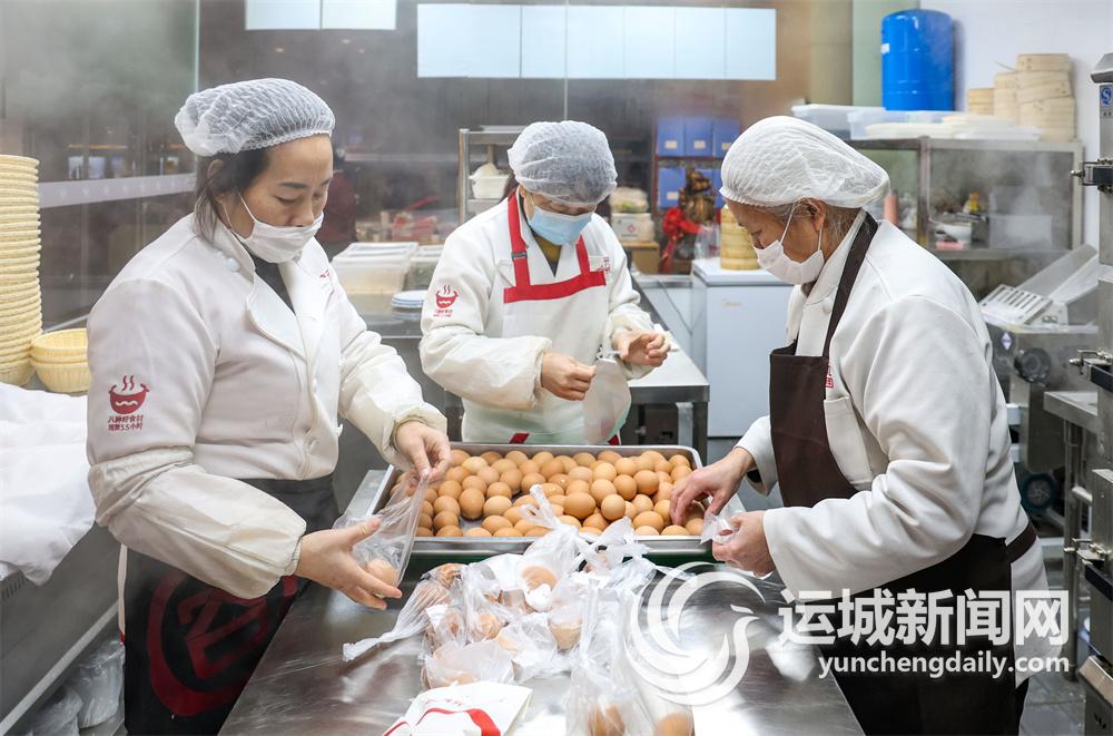 活動當天,谷養元的廚師們凌晨2時就開始在廚房忙碌起來,用提前準備好的紅棗、麥仁、葡萄干、糯米、花生、大米、豇豆、高粱米8種食材進行精心熬煮,3個多小時后,香濃的臘八粥就出鍋了。另一邊,包子工也已就位,兩個蒸箱同時工作。為了能讓戶外勞動者吃飽,谷養元還特意為每份粥配備了兩個包子和1個雞蛋。