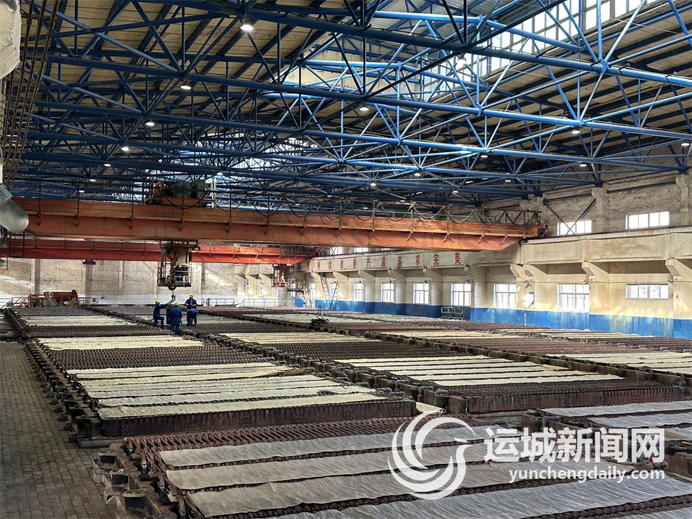 中條山集團北方銅業垣曲冶煉廠電解車間內,陽極板在電解液內完成電解。記者 朱 姝 攝