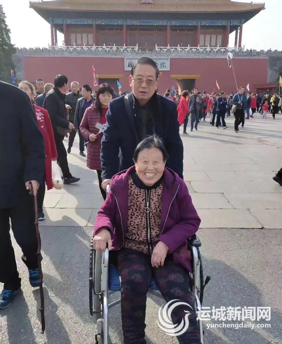 孰料天有不測風云。2018年,閆琴亮因為腿疼行走困難,閆建華花費3萬余元為她做了雙腿膝關節置換手術。之后不久,為了圓閆琴亮想去北京看看的夢想,閆建華帶著她來到北京,用輪椅推著她,參觀天安門廣場,瞻仰毛主席紀念堂,把故宮博物院、北海公園、天壇公園等景點幾乎逛了個遍,并在故宮博物院留下了一張珍貴的照片。