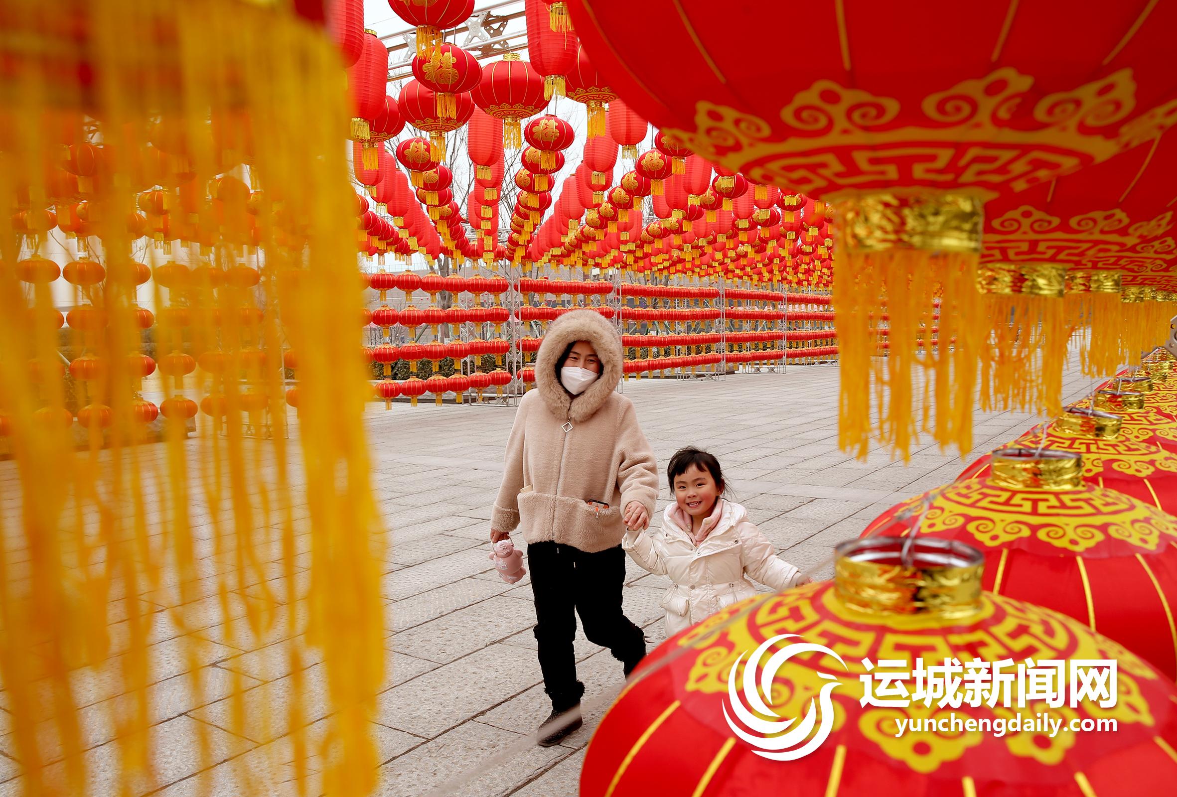 昨日,在解州關(guān)帝祖廟關(guān)圣文化廣場(chǎng),由一排排紅燈籠打造而成的大型廊道非常吸睛,吸引了不少游客駐足拍照。景區(qū)御園內(nèi),喜慶的燈籠、五彩的風(fēng)車各歸其位,在風(fēng)中搖曳、旋轉(zhuǎn),年味兒撲面而來!