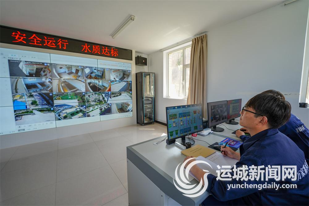 河津武家堡生活污水處理站內,工作人員在監測水質。記者 陳方斌 攝