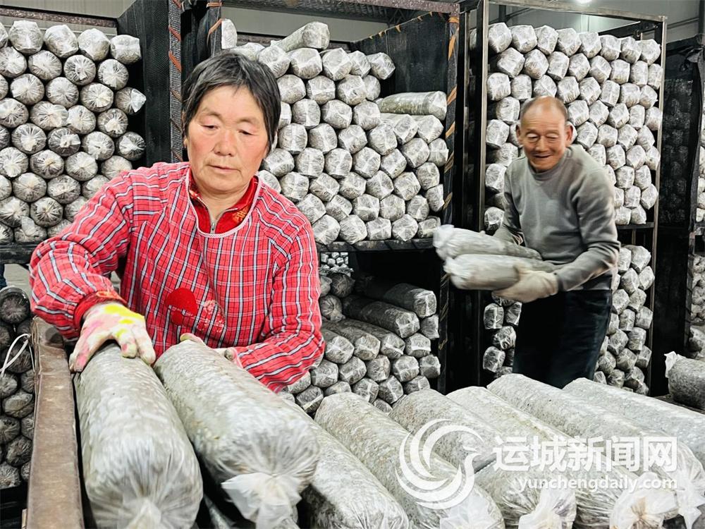 2月18日,垣曲縣皋落鄉娟娟種植專業合作社工作人員在搶制香菇菌棒。