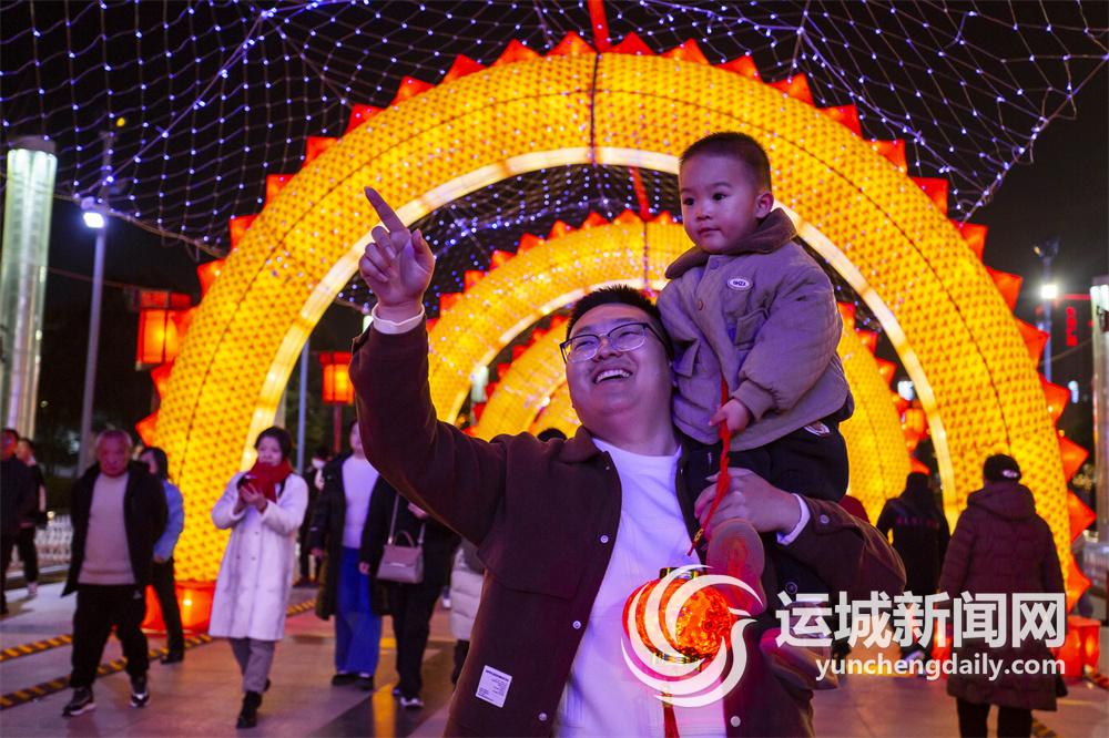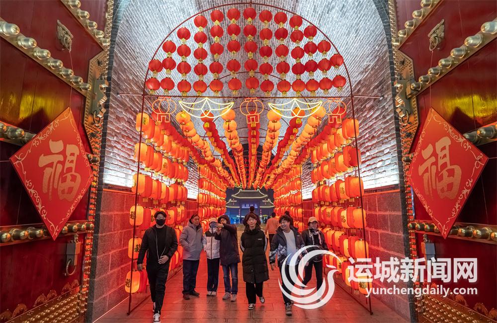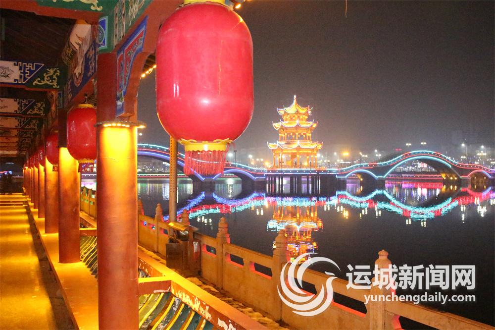 運(yùn)城舜帝公園流光溢彩迎新年。