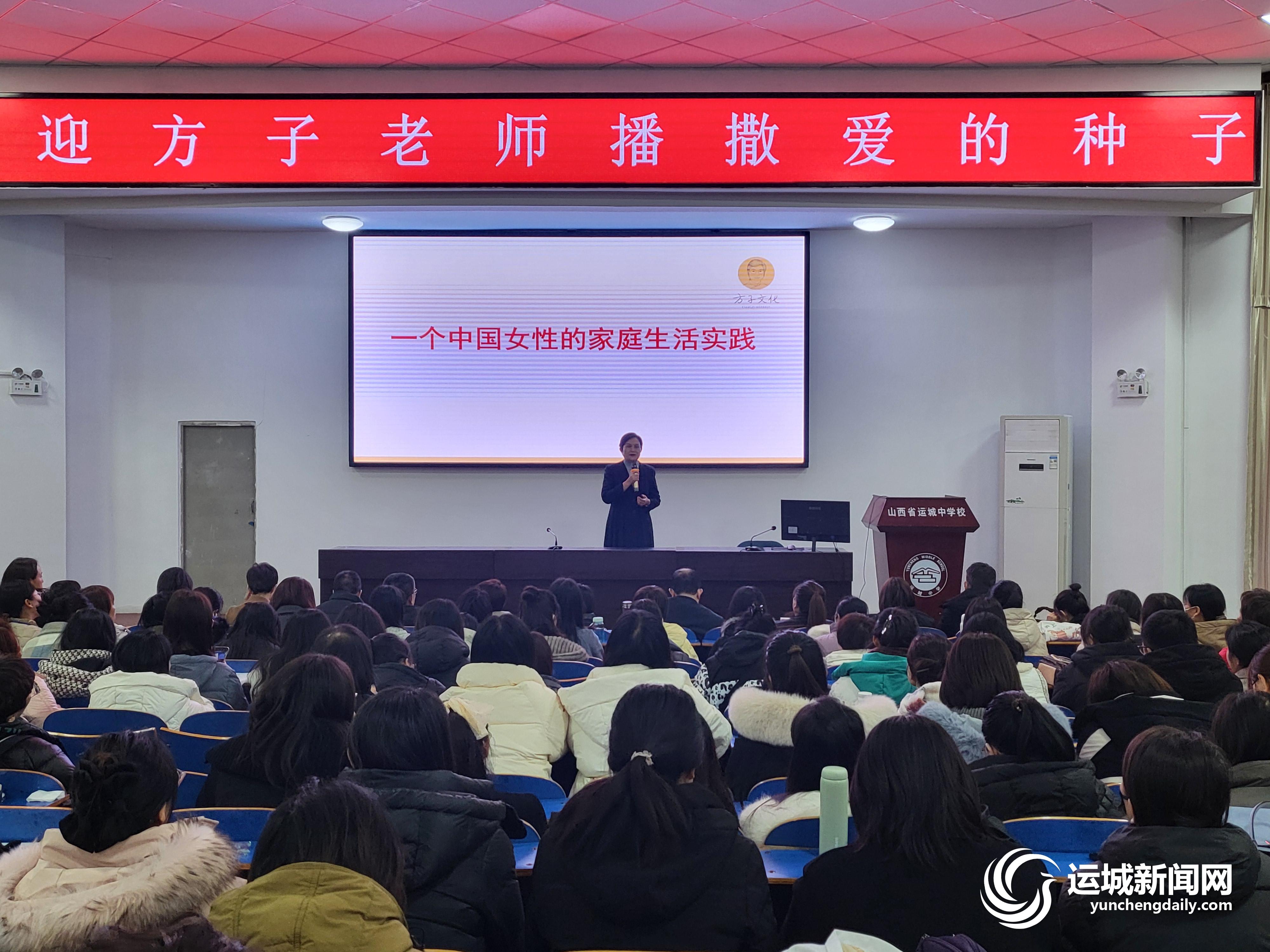 為進一步更新、樹立科學的教育觀,2月20日,運城中學邀請山東知名家庭建設志愿者方子到校,做了一場“一個中國女性的家庭生活實踐”主題報告。當天,報告廳內座無虛席,共有200余名教師職工和聽眾到場。
