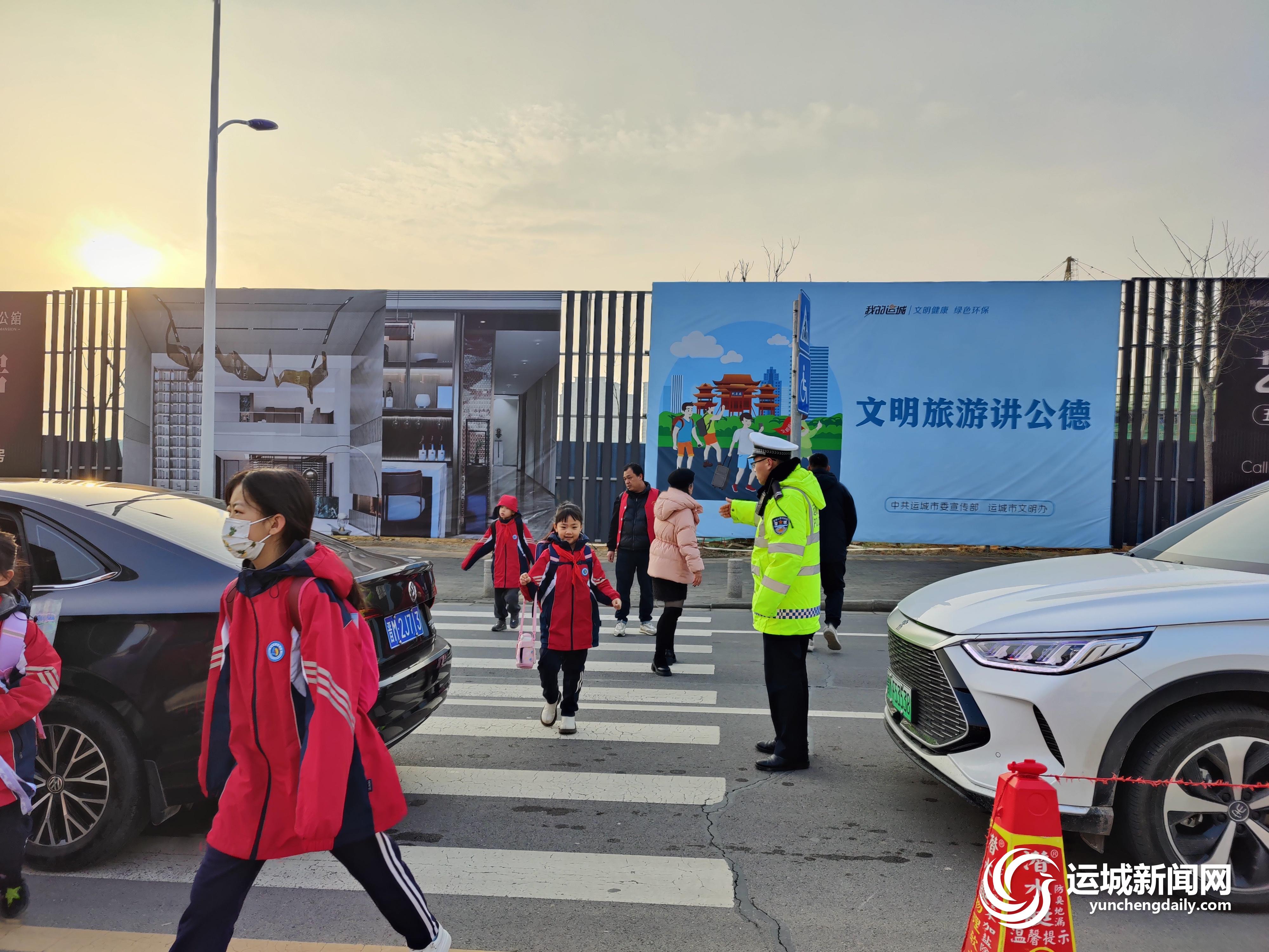 “路上小心,新學期好好加油!”8時許,在運城市大運小學門口,一位家長駕車將學生送至校門口,與學生道別后,快速將車輛駛離。校園門前交通標志醒目,路旁豎立著“注意兒童”的標牌,地面減速標線、行人進校專用通道貼心提醒,學生們在學校正門斑馬線前自覺遵守指揮,等待車流通過,駕車的家長也做到即停即離,道路整體保持暢通,未出現明顯擁堵。