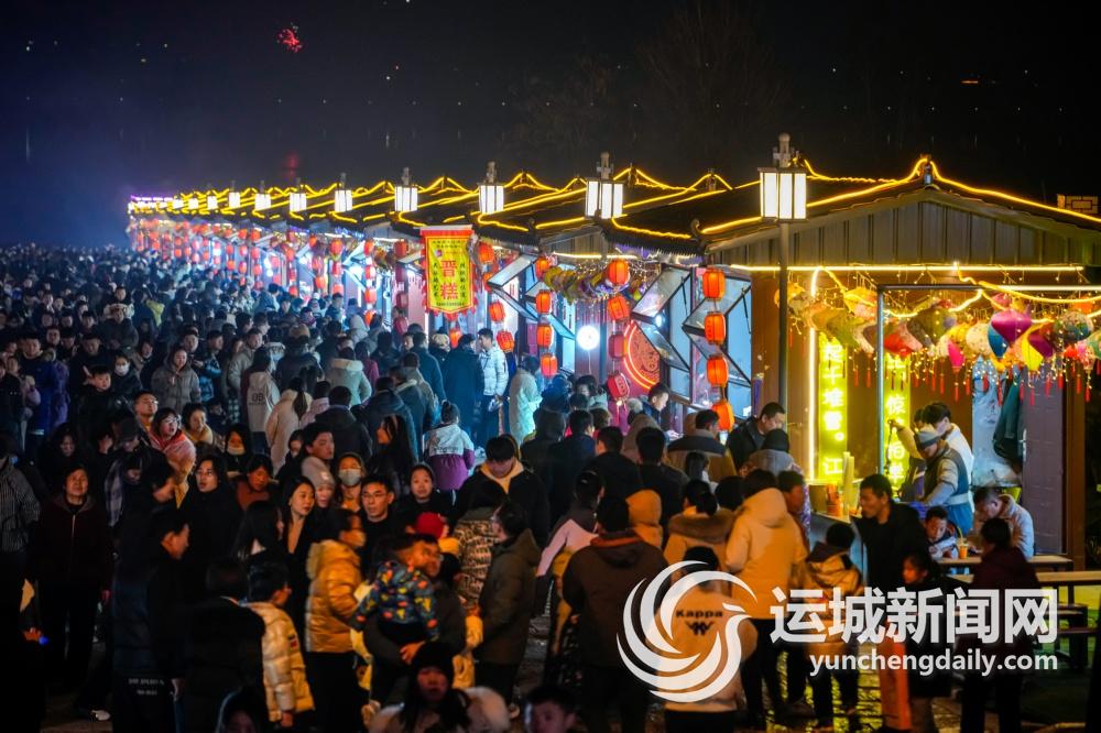 2月24日元宵夜,游客在河東池鹽文化博覽園龍年燈會上賞花燈、品美食。本報記者 閆 鑫 攝
