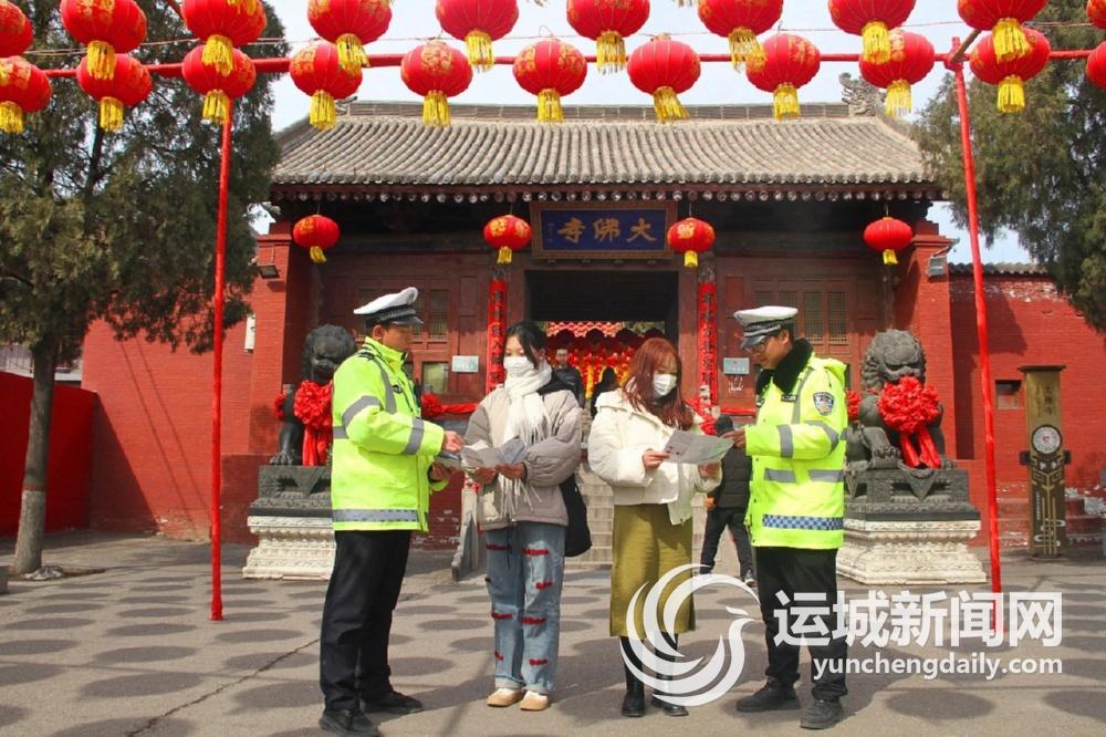 運城晚報訊(記者 張蕊彤)3月1日,稷山交警大隊民輔警來到2024年稷山縣大佛寺民俗登高節活動現場,向游客和群眾進行交通安全宣傳。