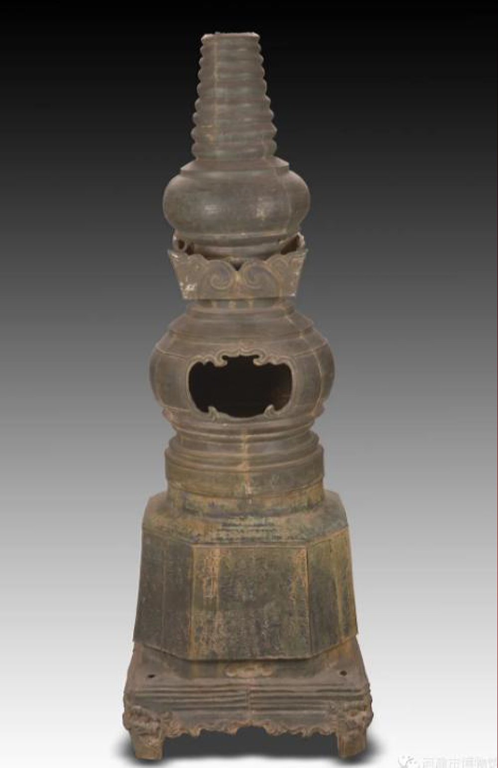 塔剎位于塔的最高處,是“觀表全塔”和塔上最為顯著的標(biāo)記。河津市博物館館藏珍品文物中,有一件明嘉靖年間鑄造的藏式銅塔剎。