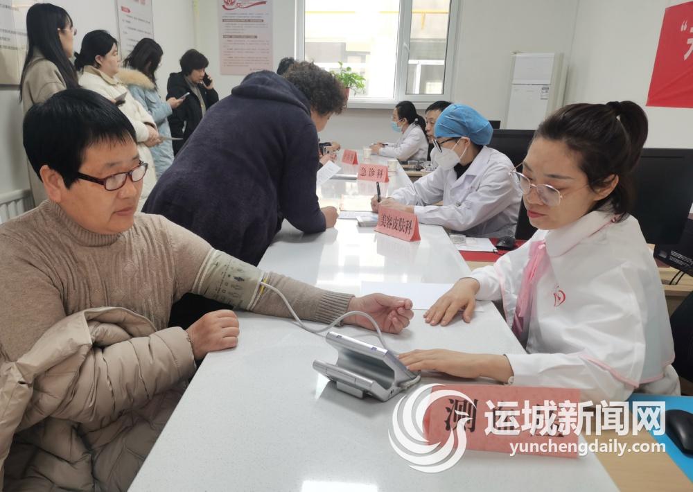 3月6日,運城市中心醫院醫務人員為鹽湖區東城街道吉祥社區女性居民進行健康體檢。 記者 范楚喬 攝