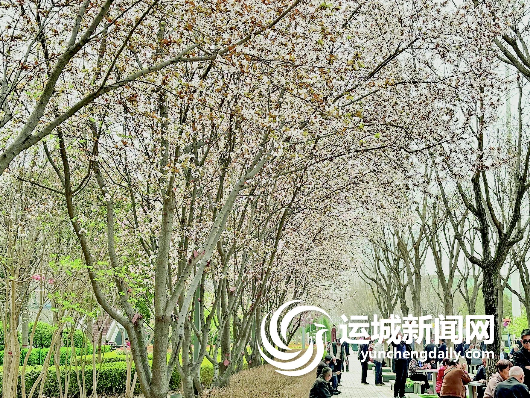 再往前走,休閑鍛煉區、棋牌區內更是熱鬧。市民們有的三五人圍坐一起下棋,有的坐在休閑座椅上嘮嘮家常,有的操作器械鍛煉身體……旁側一排成片的紫葉李開得正好,樹上的花朵粉白交織,如云似霞,將道路裝點得詩情畫意,不時還有幾只小鳥駐足枝頭嘰嘰喳喳。微風輕拂,紫葉李晃動著花枝,讓人倍感舒服愜意。