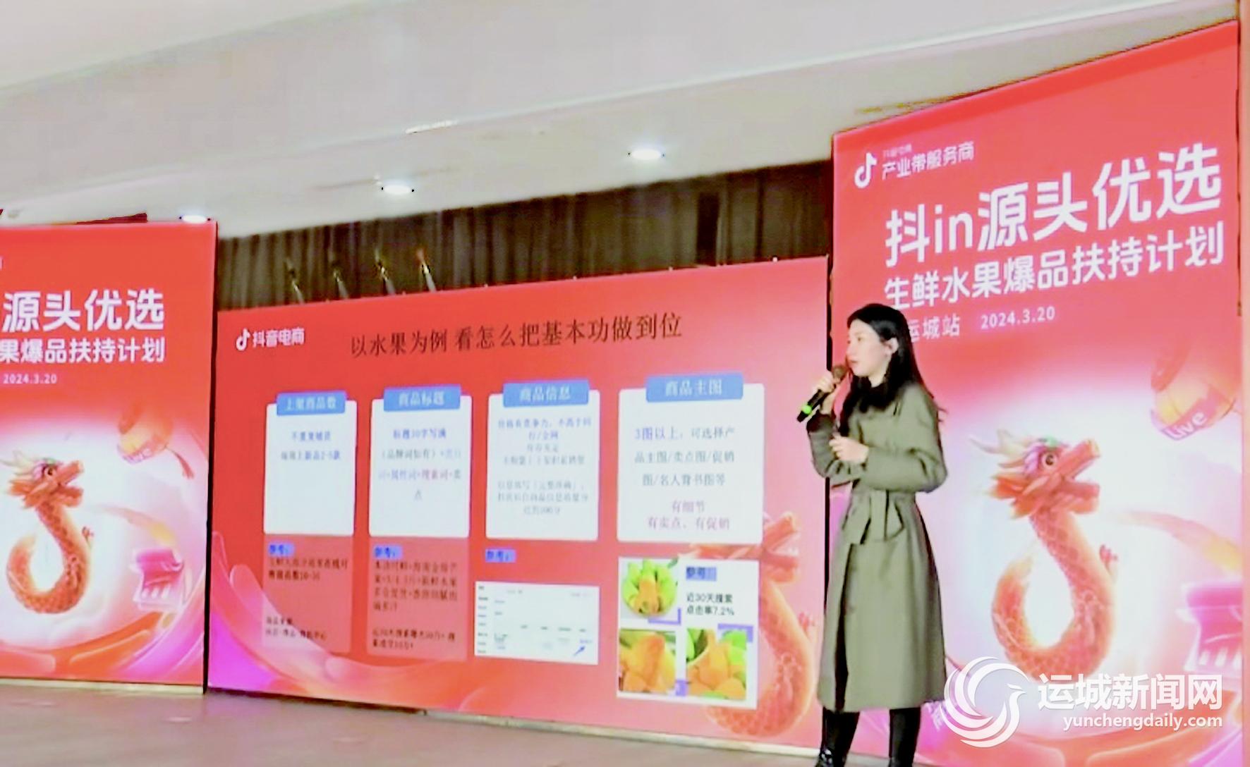 運城晚報訊(記者 王露)3月20日,鹽湖區(qū)人民政府和抖音電商,聯(lián)合舉辦抖in域見好貨節(jié)——生鮮水果爆品扶持計劃運城站活動(上圖)。