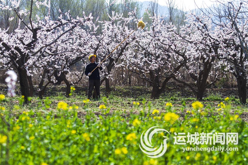 近日,夏縣廟前鎮的農民搶抓時機,對盛開的萬畝杏花加緊實施授粉管護作業,田間地頭一派繁忙景象。