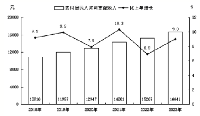 圖9 2018—2023年農(nóng)村居民人均可支配收入及其增長速度