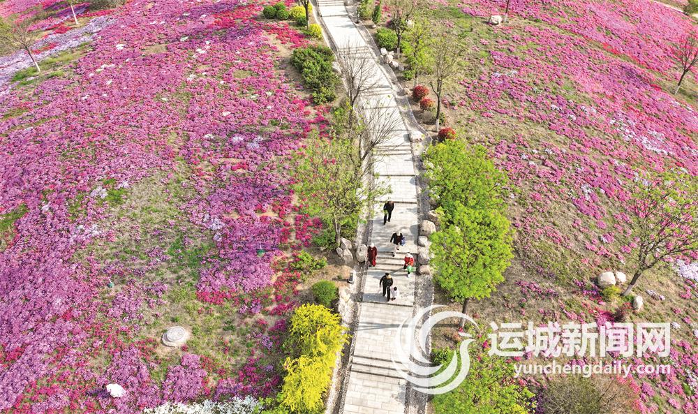4月13日,市民在稷山縣汾河國家濕地公園游玩。