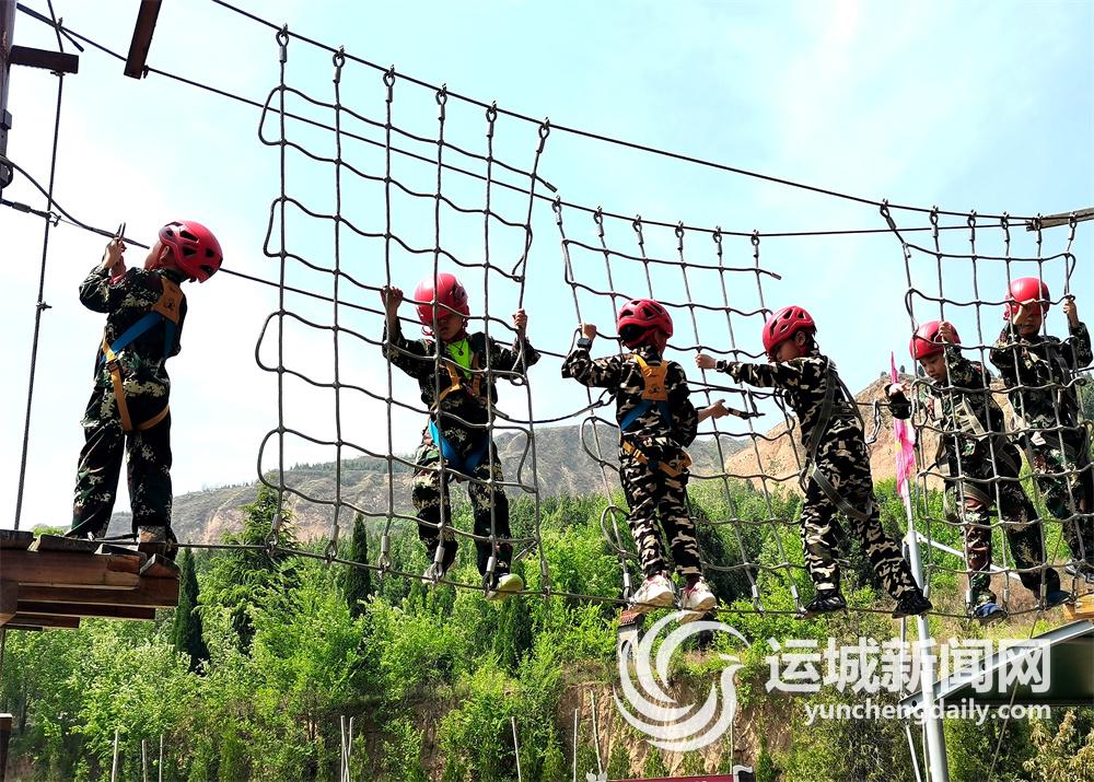 在這里,孩子們在研學導師的幫助下穿上迷彩服、戴上防護帽,系好安全裝備,便開始了通關挑戰: