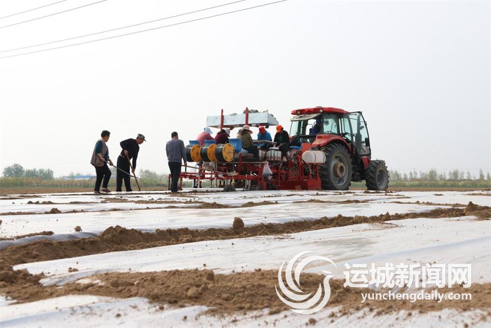 4月是丹參的播種期,在鹽湖區泓芝驛鎮中藥材種植基地,一臺新型根莖類中藥材復式播種機正緩緩前進,6名投苗手將丹參種塊整齊地放進機器,經過鏈槽轉動傳輸,將其精準完整地播種在松軟的土壤中。