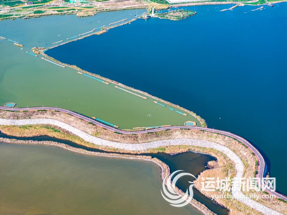 近年來,我市緊緊圍繞鹽湖生態保護,從堤埝除險加固、河道疏浚、水系連通、濕地修復等方面全力修復和保護鹽湖。如今的鹽湖堤埝縱橫,分割出不一色盤,分外妖嬈。