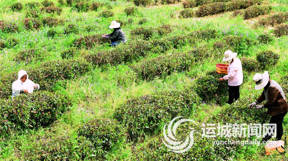 4月28日,在垣曲縣一處家庭農場茶園里,村民在采摘茶葉。多年來,該茶園致力于“南茶北引”,建立龍井茶基地,從種植、采收到炒制、銷售形成產業鏈,帶動當地村民就近打工增收。