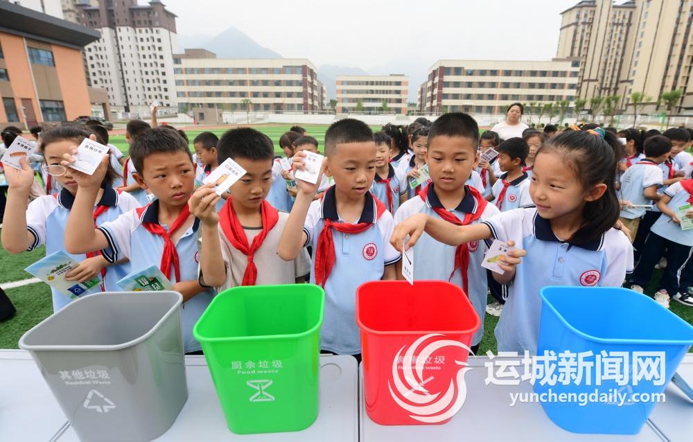 連日來,永濟市機關事務服務中心聯合教育部門,組織開展“踐行新時尚 分類志愿行”主題活動。垃圾分類宣傳志愿者們走進該市中小學校,通過科普垃圾分類知識、趣味游戲、模擬投放等形式,引導學生從小養成垃圾分類的好習慣,進一步增強資源節約和綠色環保意識。 特約攝影 李向東