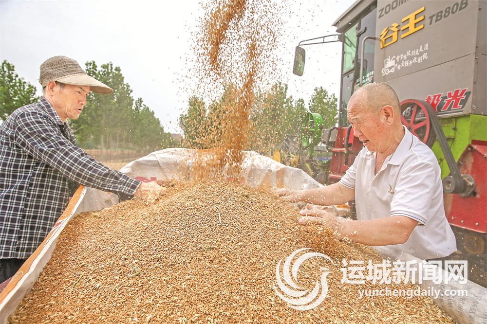 地處汾河岸畔的稷山縣上費村小麥喜獲豐收,河灘水澆地畝產達600公斤。圖為6月3日,農戶搶收小麥。特約攝影 史云平 攝