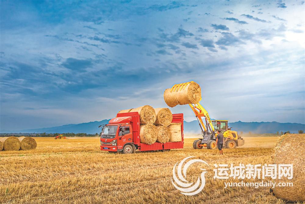 眼下正是小麥收獲的關鍵時期,田間地頭一派繁忙景象。6月3日,永濟市張營鎮農機手駕駛機械將打捆好的小麥秸稈運輸離田。近年來,永濟市張營鎮持續貫徹新發展理念,從群眾利益出發,推廣秸稈綜合利用技術,對農作物秸稈進行回收利用,促進經濟效益和生態效益“雙豐收”。
