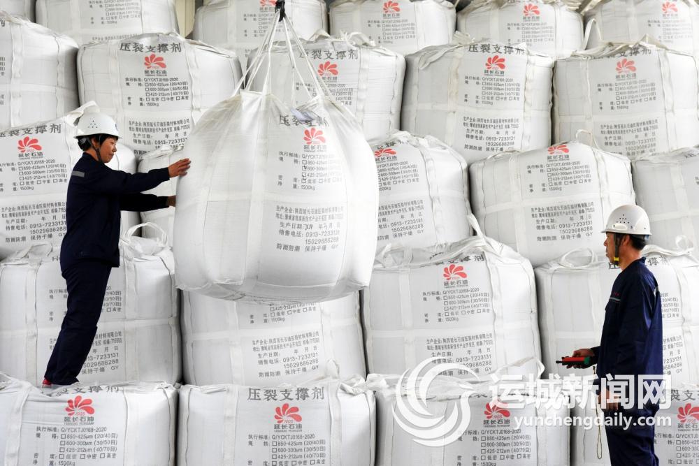 6月12日,垣曲縣剛玉陶粒有限責任公司工人把剛生產的產品入庫。