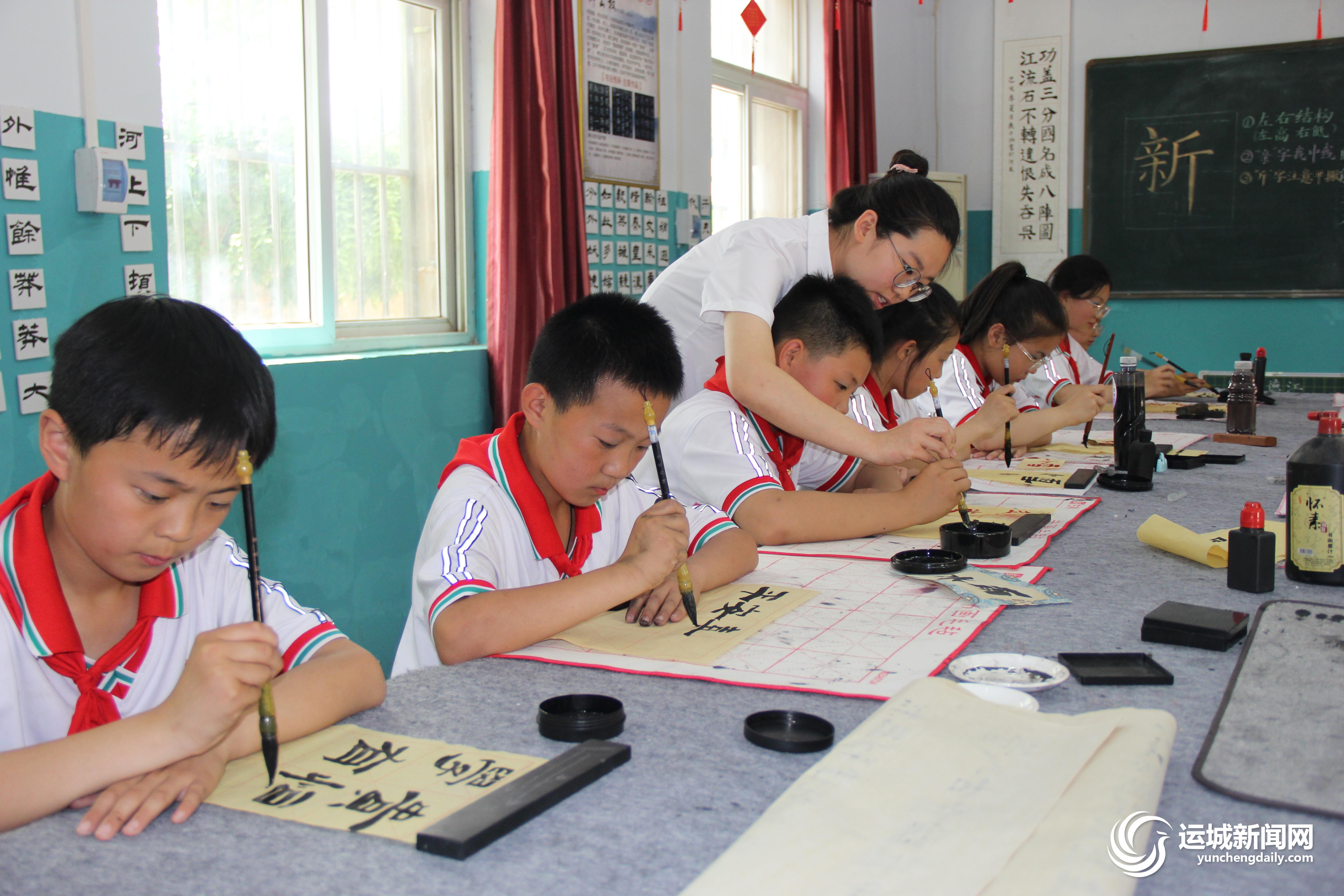“葫蘆為什么寓意著福祿?”“玉如意上的花紋是什么樣的?”“水墨畫有什么特征?”在該校每周的美術課上,教師李亭以傳統文化為切入口,讓孩子帶著問題深入思考,培養他們對美術的興趣。“平時我會找一些蘊含傳統文化特色的內容作為教材的補充,比如讓孩子們以青花瓷、團扇為主題進行創作等,打開鄉村孩子的文化視野,提高對美的理解和表達。”李亭說。