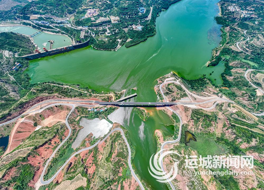 6月14日,平陸縣米湯溝大橋雄姿初現,嶄新的大橋如臥波長虹,橫跨東西兩岸,橋墩整齊有序、橋面筆直平坦,與蜿蜒蕩漾的碧波、雄偉的三門峽大壩交相輝映,構成了一幅壯美的畫卷。