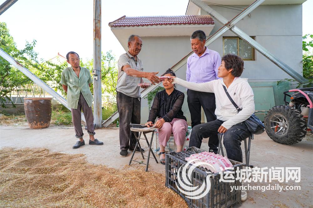 平陸縣祥寧種養專業合作社社員在領取小麥銷售款。