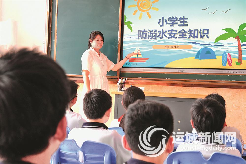 6月27日,垣曲縣英言中心校馬灣小學的教師向孩子們講解暑假防溺水安全知識。