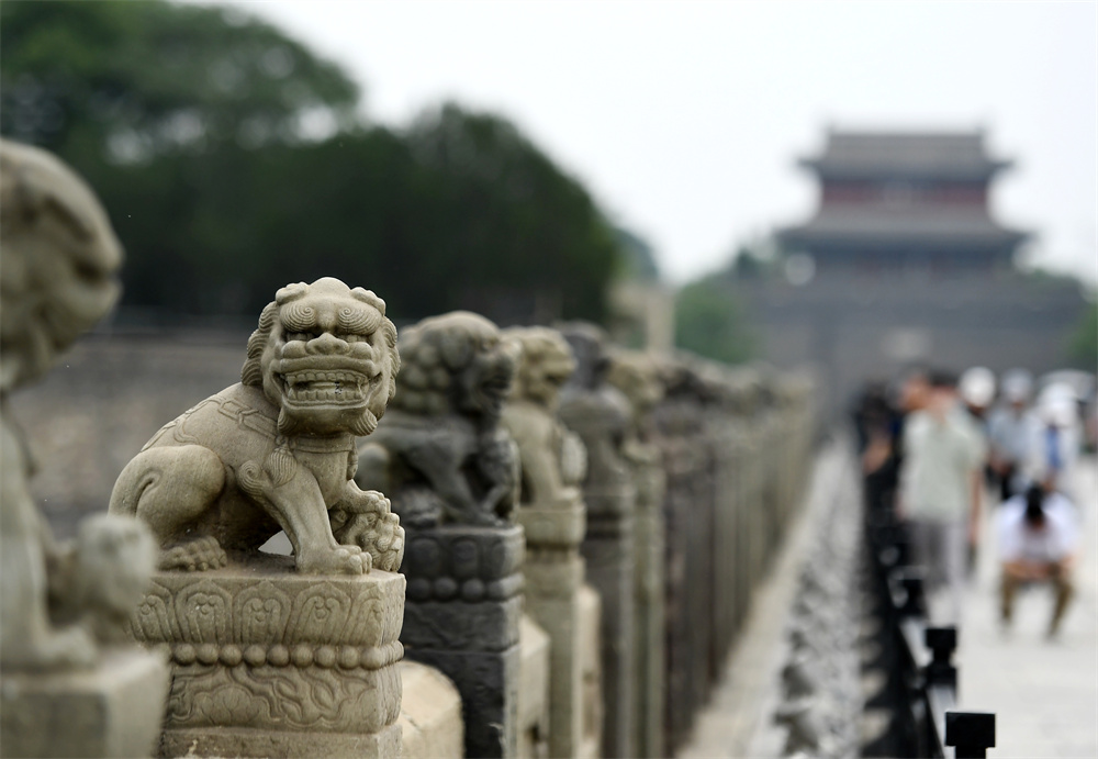 這是7月4日拍攝的盧溝橋上的石獅子。