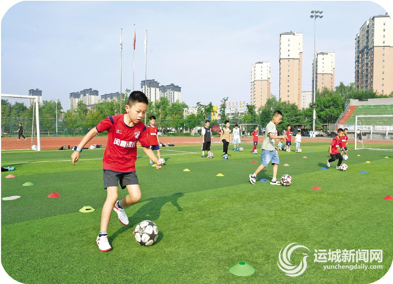 7月15日,學生在聞喜縣體育中心進行足球訓練。暑假期間,聞喜縣組織學生參加形式多樣的主題特色活動,豐富暑假體驗,拓展興趣愛好,讓孩子們樂享假期快樂時光。特約攝影 溫徐旺 攝