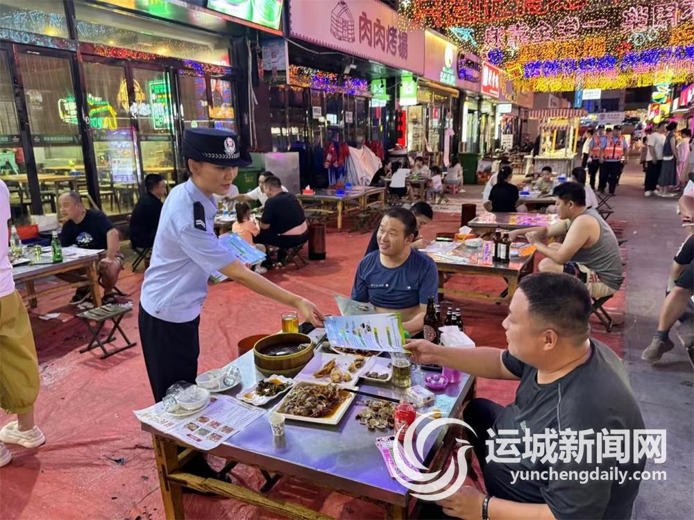 入夜后的河東大地,街頭巷尾的煙火氣逐漸升騰,閃爍的警燈和城市霓虹交相輝映。“白天打工,晚上閑著沒事出來擺攤,補貼家用,有公安民警在一旁守護,心里踏實,很放心。”在御沁園夜市擺攤的王先生開心地說道。這是連日來中心城區各夜市商販的真實夜間生活寫照。