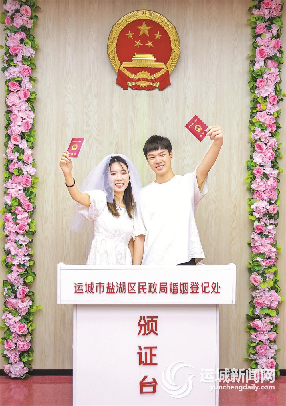 運(yùn)城晚報(bào)訊(記者 陶登肖)“愿有歲月可回首,且以深情共白頭?!?月10日星期六,正值七夕,是年輕人心目中有紀(jì)念意義的辦理結(jié)婚登記的好日子。為回應(yīng)群眾期盼,鹽湖區(qū)民政局婚姻登記處當(dāng)天正常辦理結(jié)婚登記業(yè)務(wù),為127對(duì)新人頒發(fā)結(jié)婚證。