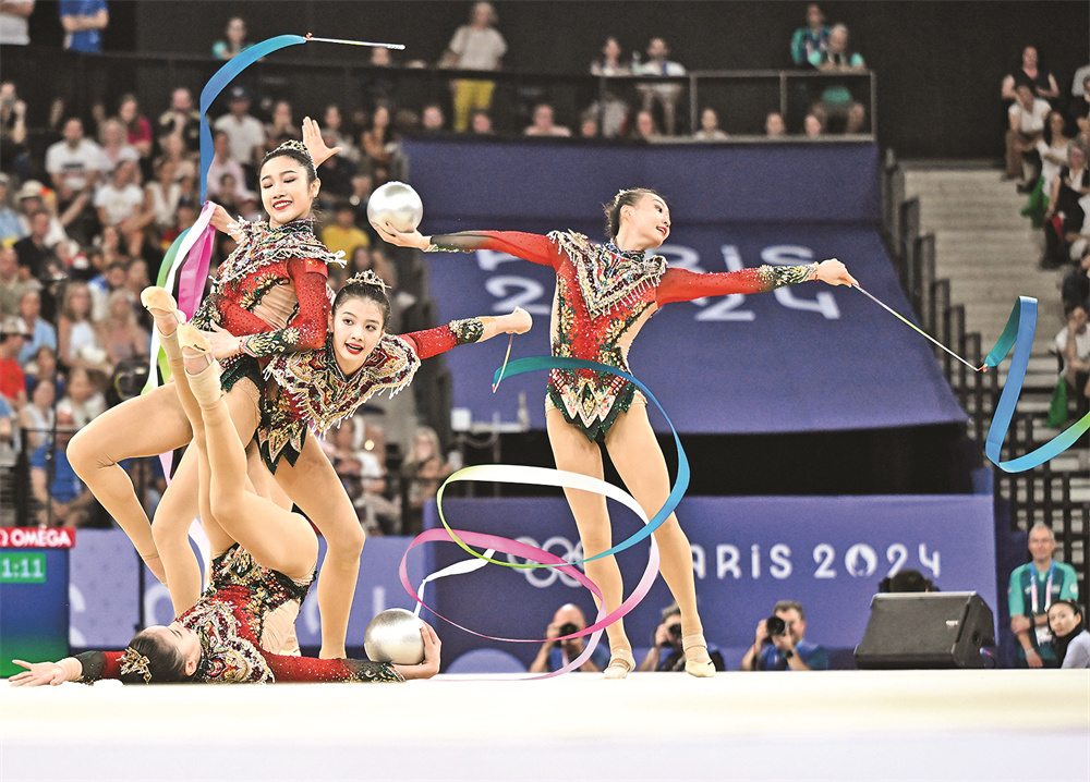 當日,在巴黎奧運會藝術體操項目集體全能決賽中,中國隊獲得冠軍。